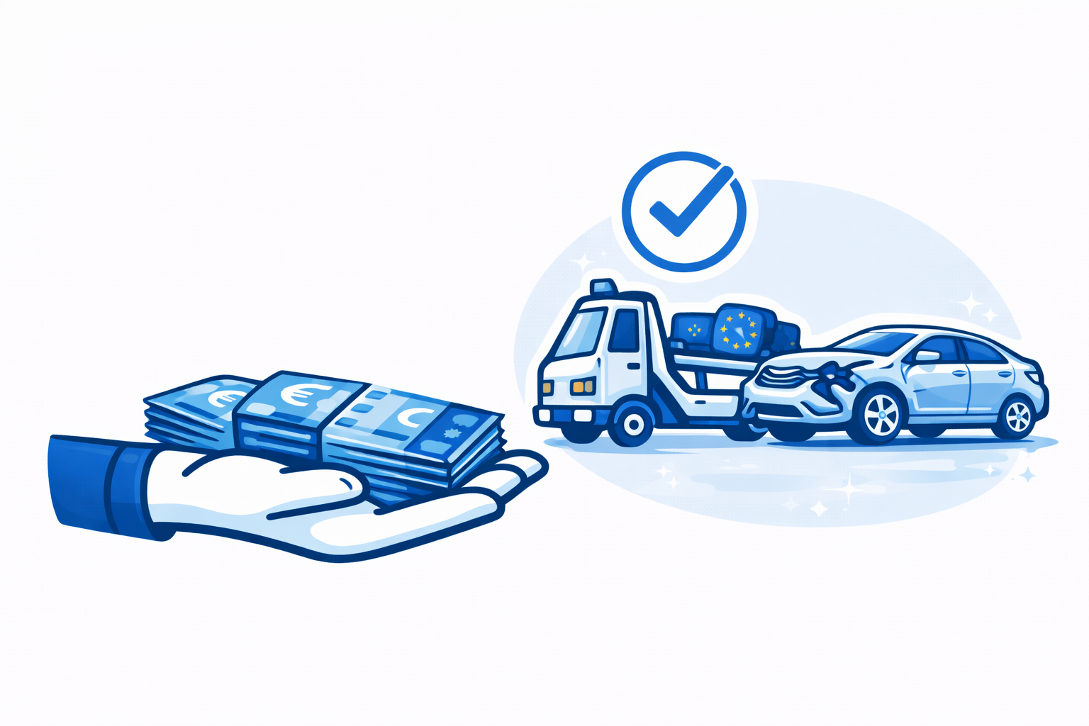 Після підписання договору ви одразу отримуєте гроші — готівкою або на картку. Ми самі організовуємо евакуатор і вивозимо автомобіль після ДТП, повністю знімаючи з вас усі турботи.